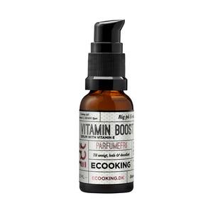 Ecooking Vitamin Boost Serum plejer din hud med fugt og E-vitamin og har helende, beskyttende samt antioxidante egenskaberEcooking Vitamin Boost er et serum, som er sammensat specielt til at give din hud maksimal fugt og pleje mens det rige indhold af ant (Læs mere)