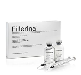Fillerina 14 dages filler kur (grad 2) Fillerinas filler kur har dokumenteret effekt og er klinisk testet.  Fillerina filler-kur mindsker aldringstegn som fine linjer og rynker, og giver volumen til læber og kindben. Fillerina indeholder 6 aktive hyal (Læs mere)