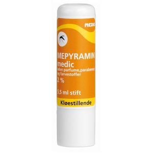 Praktisk Mepyramin Medic stick til insekt bid- og stik I sommertiden hvor huden angribes af myg og andre irriterende insekter er denne smarte stift din bedste ven!Mepyramin Medic Stick mindsker gener såsom kløe, svie og hævelse, som kan forekomme på huden (Læs mere)