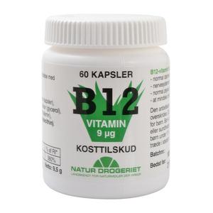 Natur-Drogeriet B12-vitaminer – supplerer 9mcg til din daglige kost Naturligt kosttilskud, indeholdende 60 kapsler med det gavnlige B12 vitamin.B12 vitaminet kan ikke produceres i kroppen, og må derfor hentes gennem kosten. Madvarerne som indeholder mest (Læs mere)