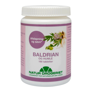 Natur-Drogeriet Baldrian og Humle kosttilskud med 190 tabletter Dette naturlige kosttilskud består af tabletter med et indhold af urterne Humle og Baldrian. De to gavnlige urter indeholder nogle plantestoffer, som medvirker til at skabe en ro i kroppen, s (Læs mere)