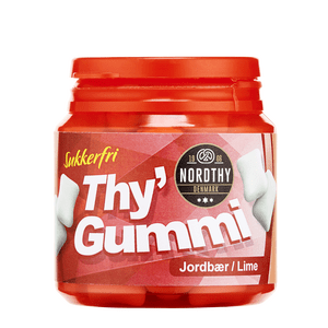 Tyggegummi fra Nordthy med sød og frisk smagPrøv de sukkerfri Thy’ Gummi fra Nordthy med smag af jordbær/lime og få et tyggegummi, der både kan tilfredsstille din søde tand og friske din ånde op. Thy’ Gummi kommer i en praktisk bøtte, der gør det nemt alt (Læs mere)